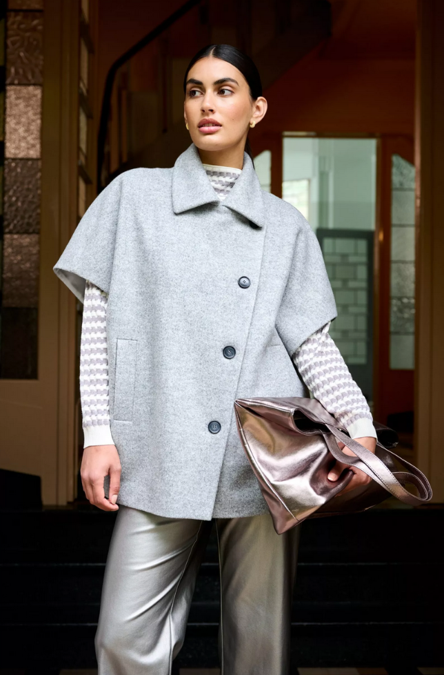 Deze wijde urban style broek is gemaakt om — letterlijk — een glansrol te spelen in je kleerkast. Het zilverkleurige faux leer van Mayerline is ademend, elastisch en verrassend comfortabel, waardoor je stijlvol voor de dag komt zonder in te leveren op bewegingsvrijheid. De legendarische snit van het merk zorgt voor een flatterende pasvorm die moeiteloos meebeweegt met jouw ritme. Een rugelastiek voegt extra comfort toe, terwijl de rits en de matte metalen drukknoop zorgen voor een strakke, moderne afwerking. In de zijnaden zitten twee zakken, subtiel weggewerkt maar altijd handig. Een fluistering van luxe met een futuristische flair.