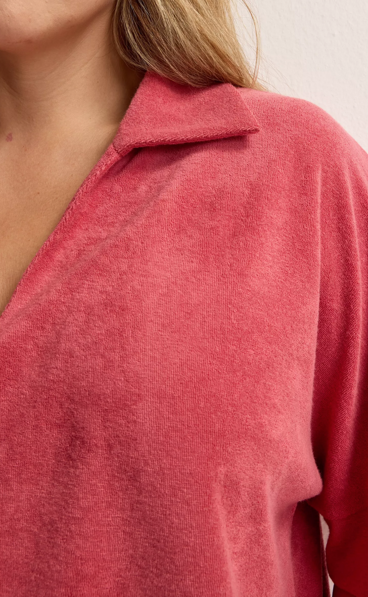 Badstof voelt als een zachte throwback naar vroeger, maar vandaag schittert het in een sporty‑chic polo. Deze easy‑care polo is gemaakt om in te loungen én te stralen, zonder gedoe met strijken. Combineer ‘m met de lange bijpassende rok voor een nonchalante total‑look die moeiteloos opvalt.