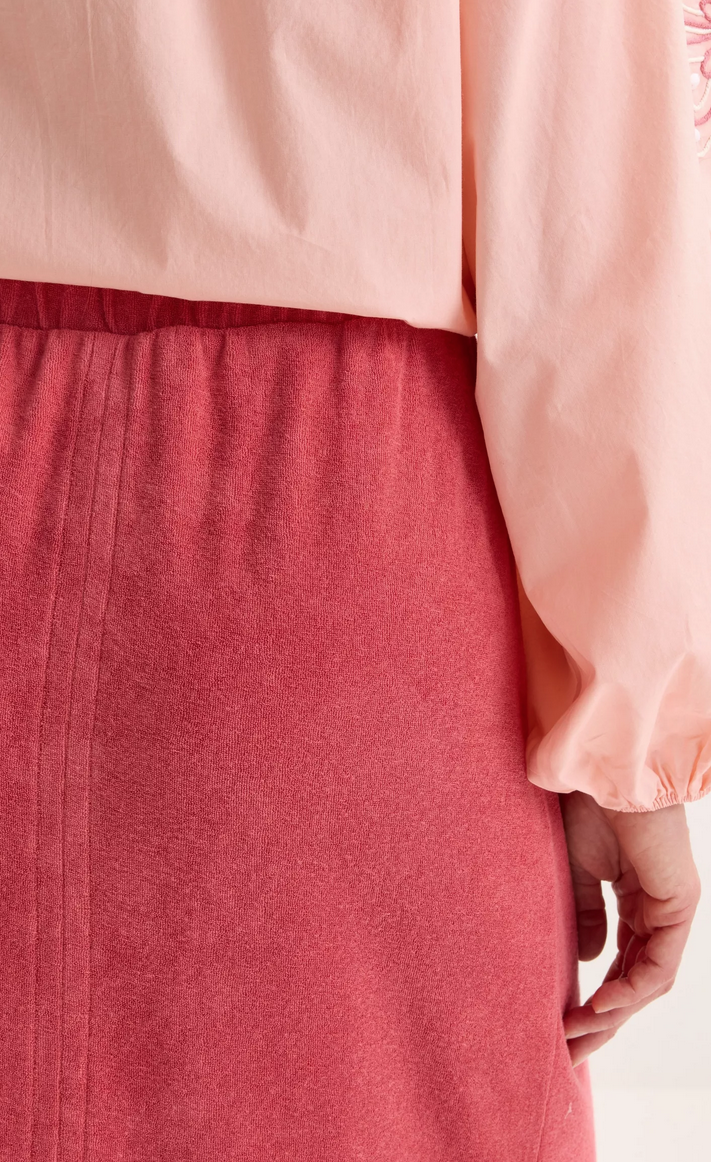 Deze lange rok tilt badstof naar een nieuw niveau: soepel, speels en verrassend chic. De elastische tailleband geeft je vrijheid, de royale split achteraan zorgt voor een elegante swish bij elke stap. Draag hem solo of ga voor de ultieme sporty‑chic total look met de matching polo.