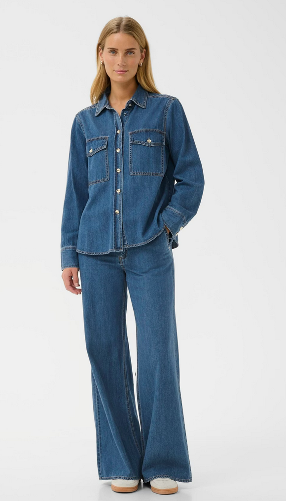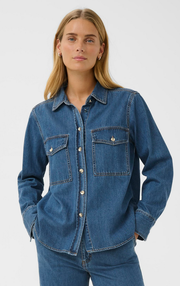 Dit klassieke denim overhemd heeft een relaxte pasvorm, opvallende borstzakken en metalen knopen voor een stoere uitstraling. Draag het dichtgeknoopt of open als een licht jasje – ideaal om in laagjes te dragen in alle seizoenen. Combineer het eventueel met de bijpassende broek om een volledige jeansoutfit te bekomen.